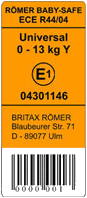 Cada dispositivo de retención infantil debe llevar una etiqueta, habitualmente en color naranja, que especifica la versión de la homologación bajo la que ha estado fabricada, la gama de pesos admitida y la compatibilidad con los vehículos. |